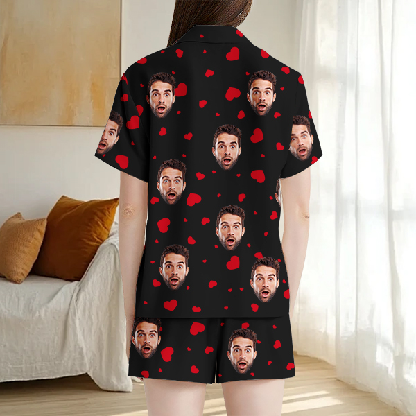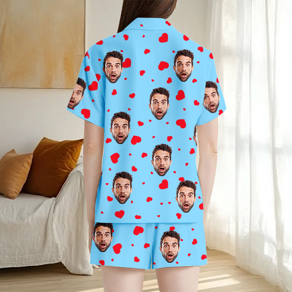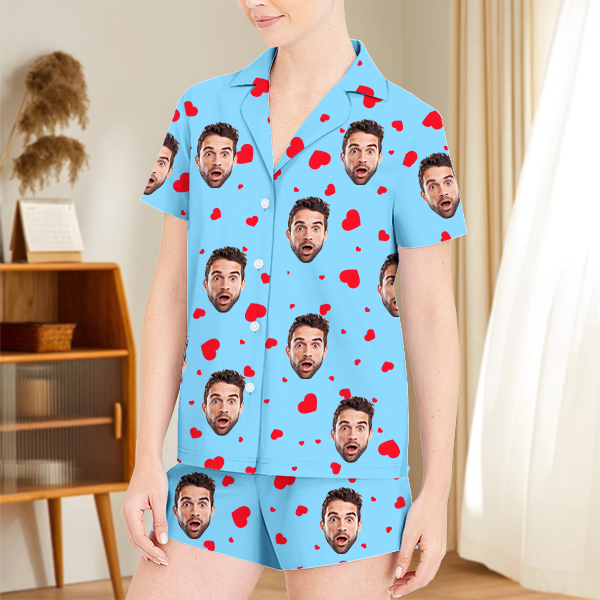 Custom Face Short Sleeve Button-front Pajamas Custom Face Pajamas Gift For Woman, For Wife