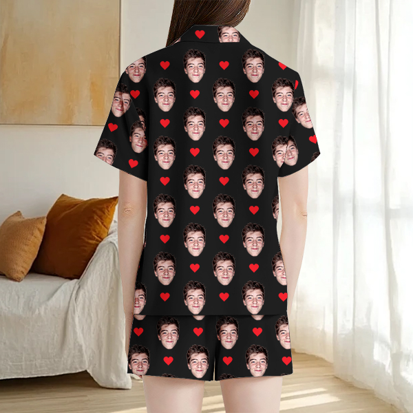 Custom Face Short Sleeve Button-front Pajamas Custom Sweet Heart Face Pajamas Gift For Woman, For Wife