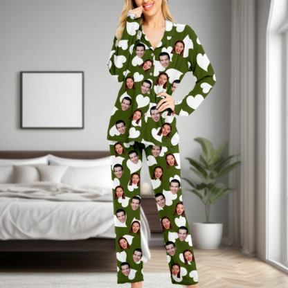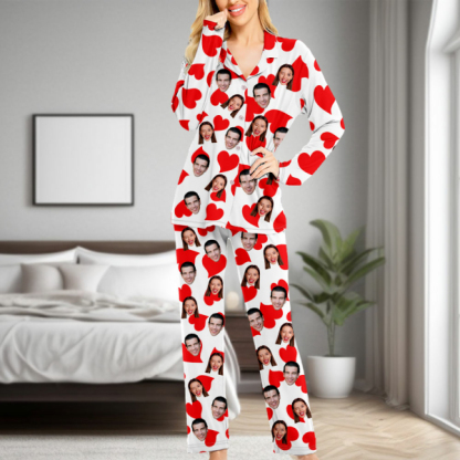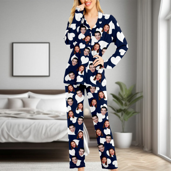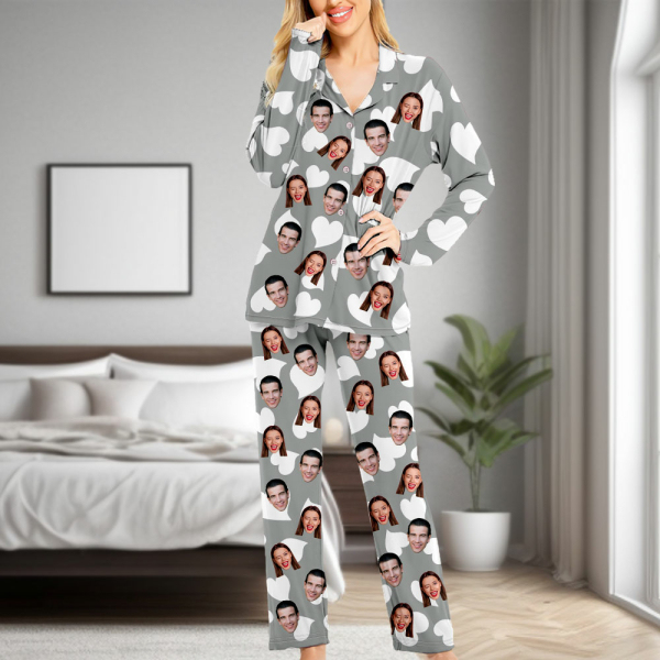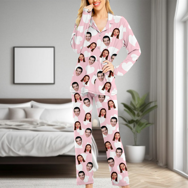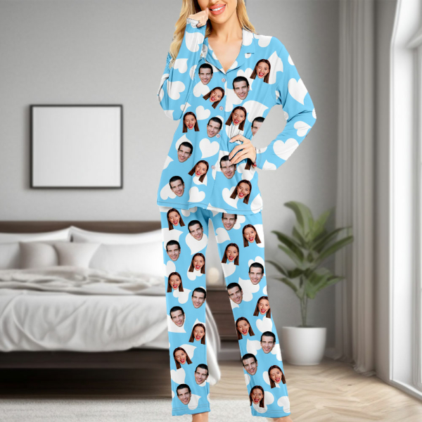 Custom Faces Long Sleeve Long Pants Button-front Pajamas Custom Pet Photo Pajamas Gift For Woman, For Pet Lover