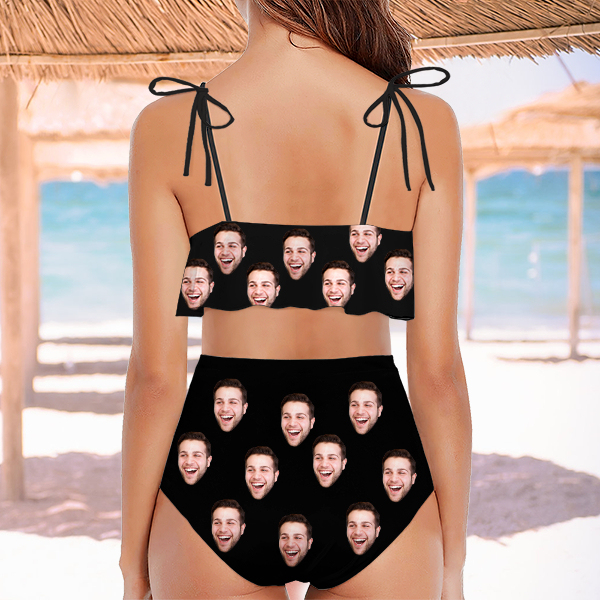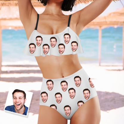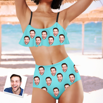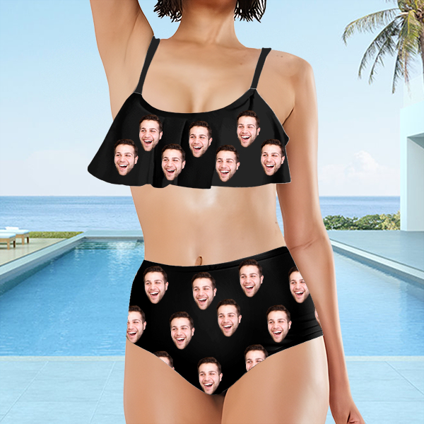 Custom Funny Bathing Bikini Suits Women's Ruffle Summer Suits High Waisted Personalized Two Pieces Bathing Suits Gift For Her
