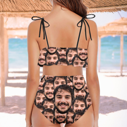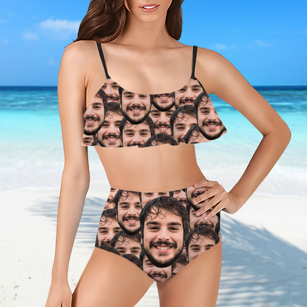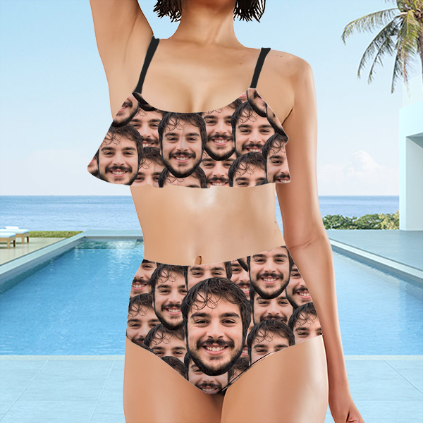 Custom Funny Bathing Bikini Suits Women's Ruffle Summer Suits High Waisted Two Pieces Multi Faces Bathing Suits Gift For Her