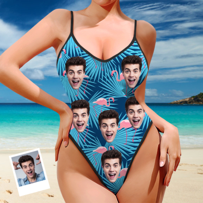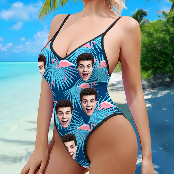 Custom Hawaiian Flamingo V-neck One-piece Bathing Swimsuit Personalized Photo Deep V-back Straps Swimsuit For Women,gift For Wife