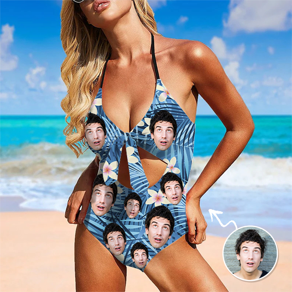 Custom Hawaiian Frangipani Swimsuit Halter Neck One Piece Summer Bathing Blue Swim Suits Outfits,gift For Her For Wife