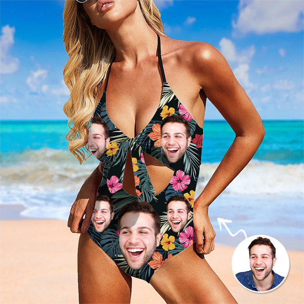 Custom Hawaiian Hibiscus Swimsuit Halter Neck One Piece Summer Bathing Flower Swim Suits Outfits,gift For Her For Wife