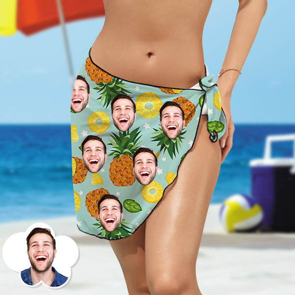 Custom Hawaiian Hibiscus Swimswear Cover Up Personalized Photo Lemon Pineapple Beach Sun Protective Wrap Swim Skirts For Women For Her