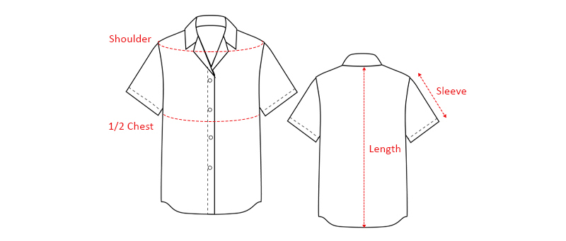 | Size | Length | Shoulder | 1/2 Chest | Sleeve |