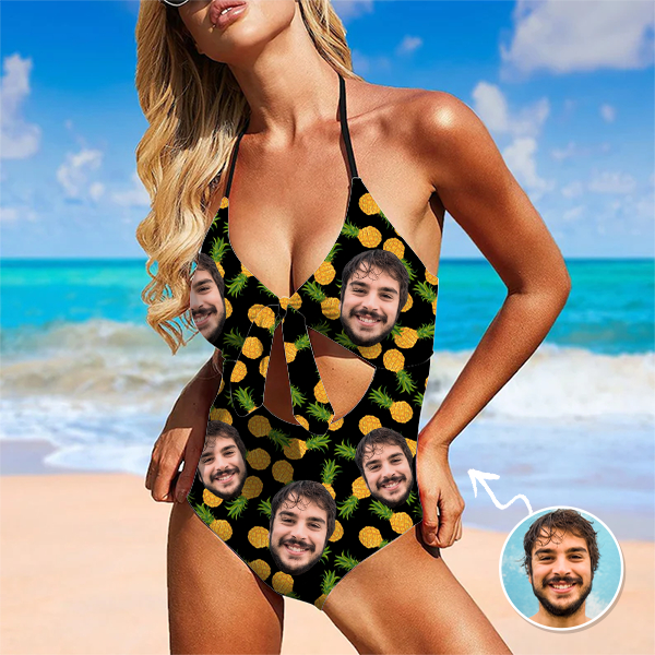 Custom Hawaiian Lemon Swimsuit Halter Neck One Piece Summer Bathing Fruit Swim Suits Outfits,gift For Her For Wife