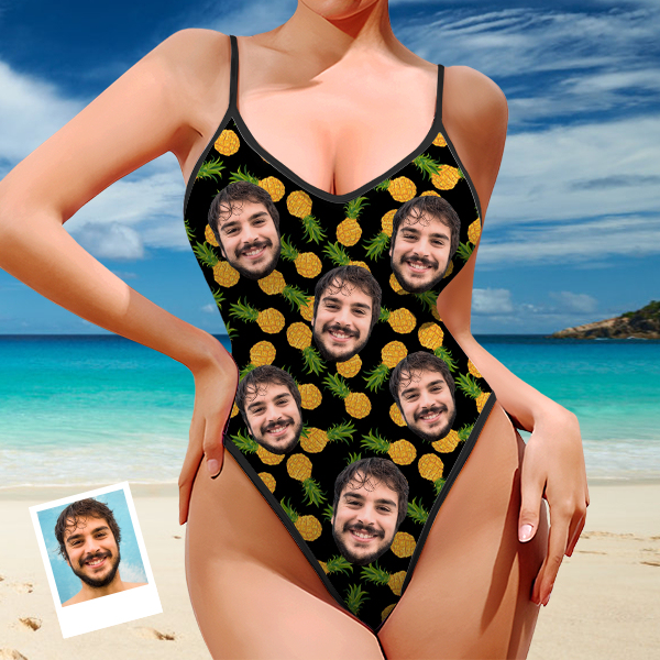 Custom Hawaiian Pineapple V-neck One-piece Bathing Swimsuit Personalized Photo Deep V-back Straps Swimsuit For Women,gift For Wife
