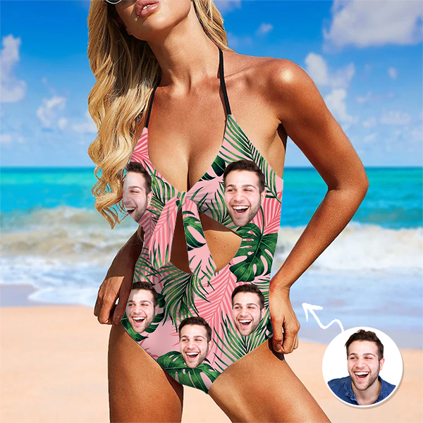 Custom Hawaiian Plant Swimsuit Halter Neck One Piece Summer Bathing Swim Suits Outfits,gift For Her For Wife