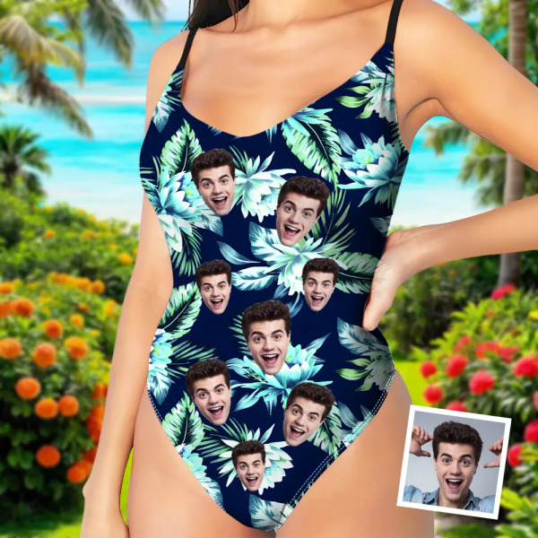 Custom Hawaiian V-neck One-piece Bathing Swimsuit Personalized Black Straps Swimsuit For Women,gift For Wife