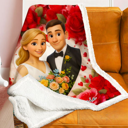 Custom Heart Blankets Personalized Face & Name Valentines Blankets Gifts For Couples