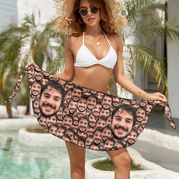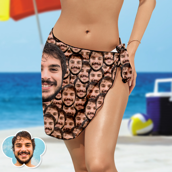 Custom Multi Faces Swimswear Cover Up Personalized Funny Faces Beach Wrap Swim Skirts For Women For Her