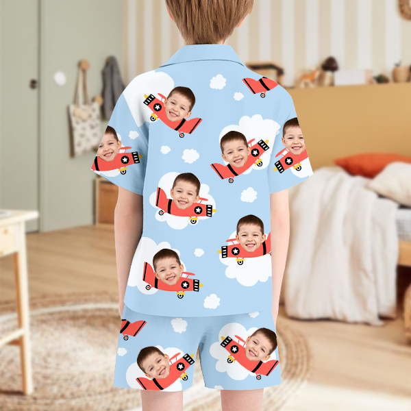 Custom Pilot Boy Hero Photo Pajamas Button-front Short Sleeve Short Pants Face & Name House-wear Suit For Boys
