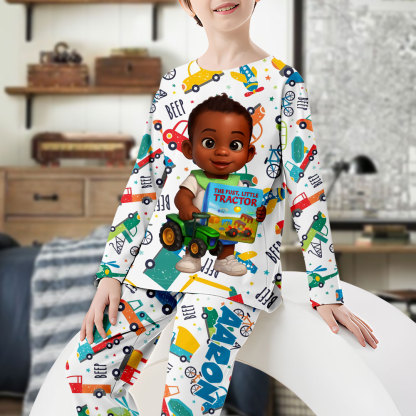 Custom Princess Mouse Girl Photo Pajamas Crew Neck Long Sleeve Long Pants Cute Strap Face & Name House-wear Suit For Boys