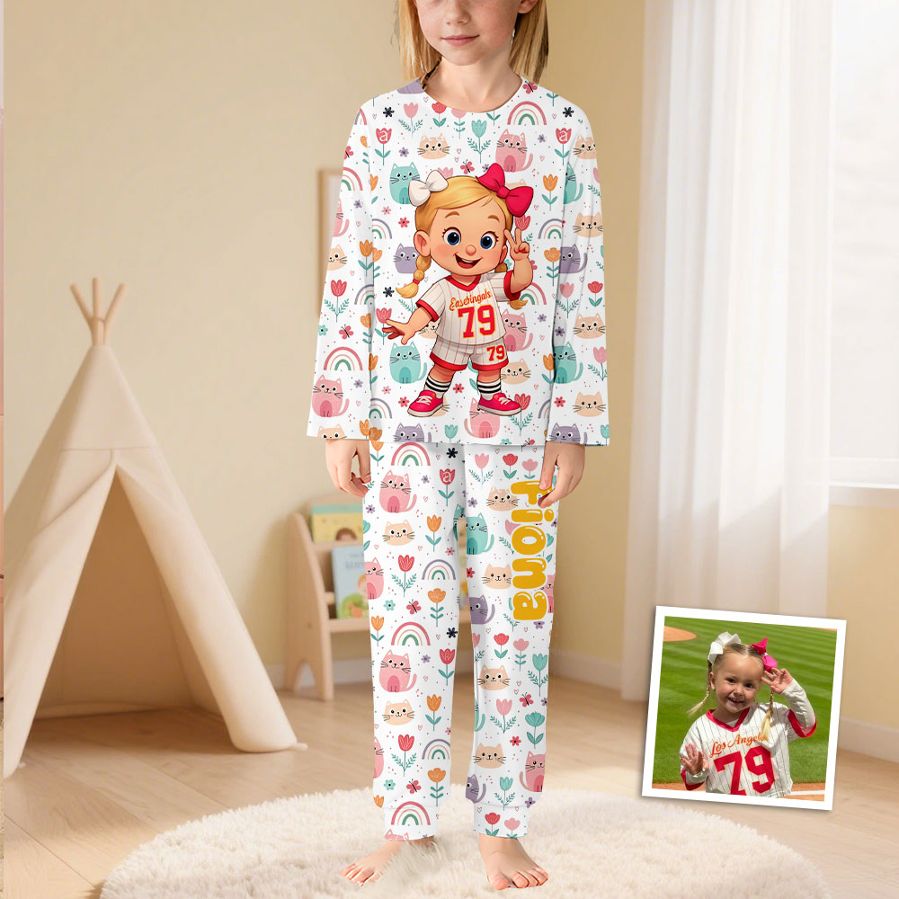 Custom Princess Mouse Girl Photo Pajamas Crew Neck Long Sleeve Long Pants Cute Strap Face & Name House-wear Suit For Girl