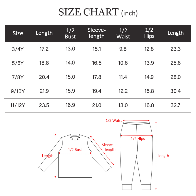 Size:3-4 Y, 5-6 Y, 7-8 Y, 9-10 Y, 11-12 Y,