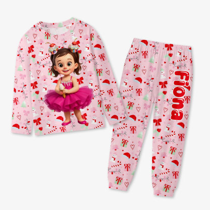 Custom Princess Mouse Girl Photo Pajamas Crew Neck Long Sleeve Long Pants Cute Strap Face & Name House-wear Suit For Girls