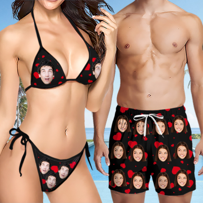 Custom Red Heart Bikini Custom Swim Suit Personalized Two Pieces Sweet Love Swimwear Bathing Suit