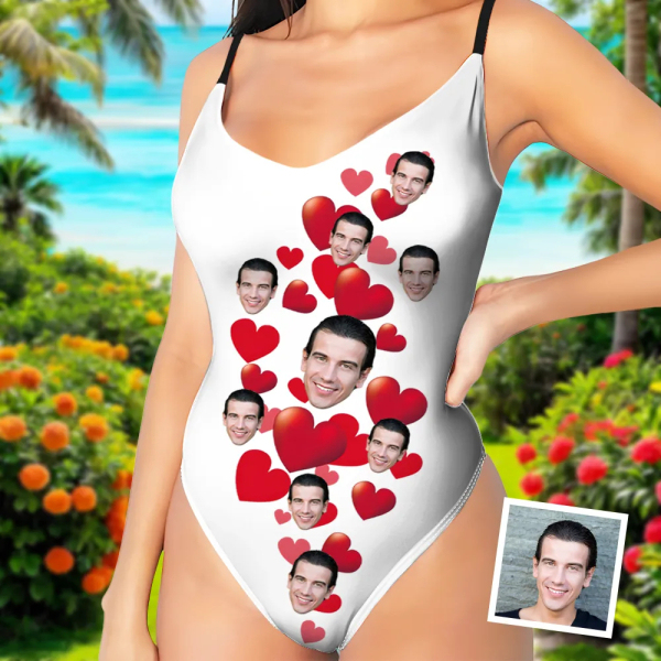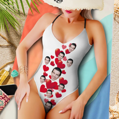 Custom Red Heart V-neck One-piece Bathing Swimsuit Personalized Hot Love Straps Swimsuit For Women,gift For Wife