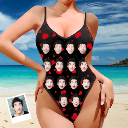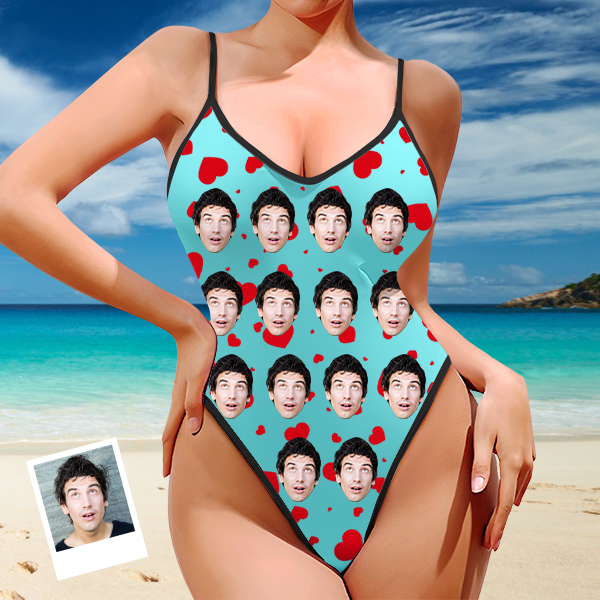 Custom Red Heart V-neck One-piece Bathing Swimsuit Personalized Photo Straps Swimsuit For Women,gift For Wife