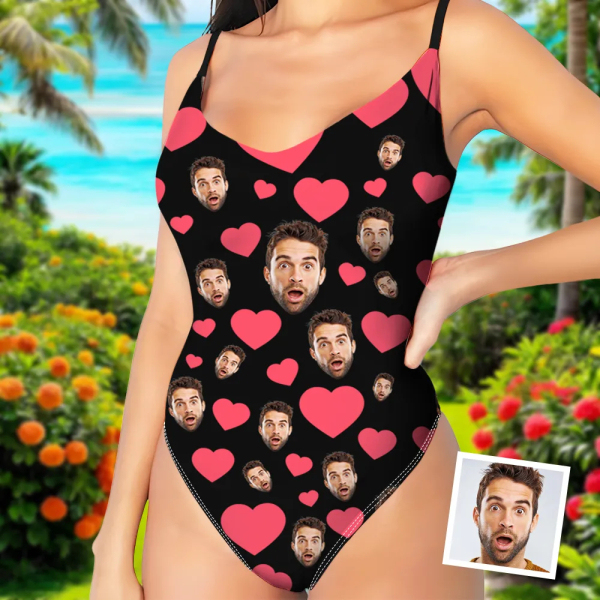 Custom Red Heart V-neck One-piece Bathing Swimsuit Personalized Sweet Love Straps Swimsuit For Women,gift For Wife