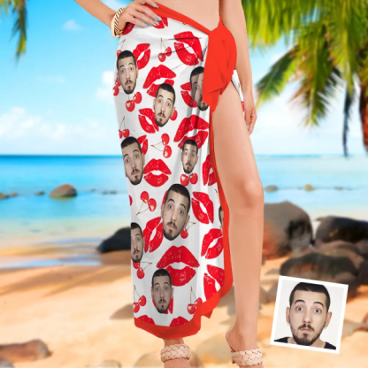 Custom Red Lips Swim Skirts Cover Up Personalized Photo Beach Sun Protective Hawaiian Swim Wrap For Women For Her