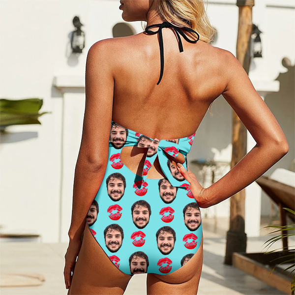 Custom Red Lips Swimsuit Halter Neck One Piece Hot Kiss Bathing Swim Suits Outfits,gift For Her For Wife