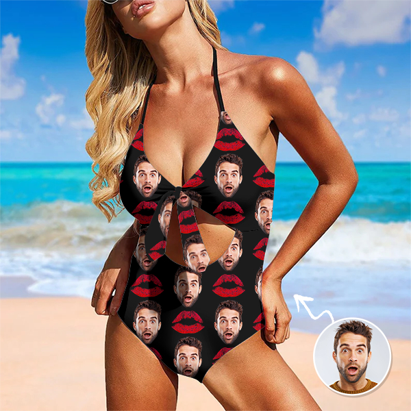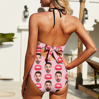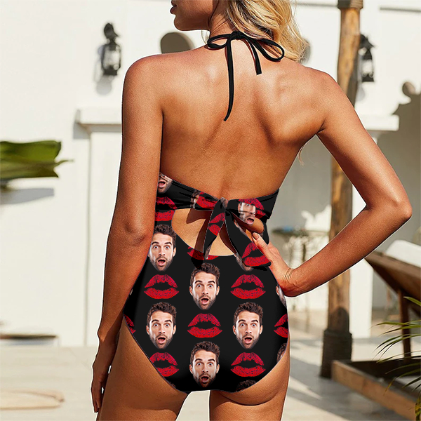 Custom Red Lips Swimsuit Halter Neck One Piece Sweet Love Bathing Swim Suits Outfits,gift For Her