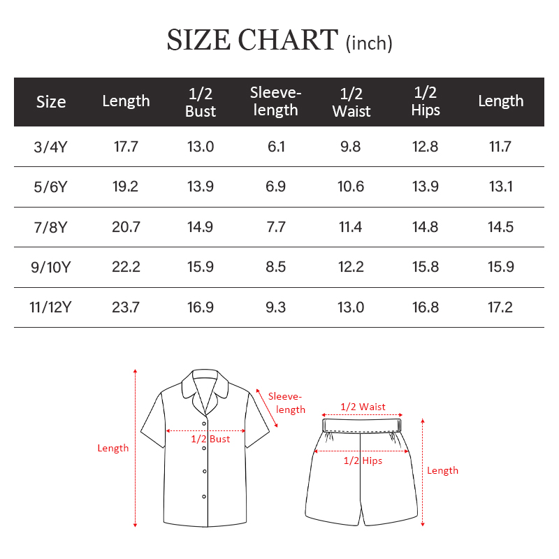 Size:3-4 Y, 5-6 Y, 7-8 Y, 9-10 Y, 11-12 Y,