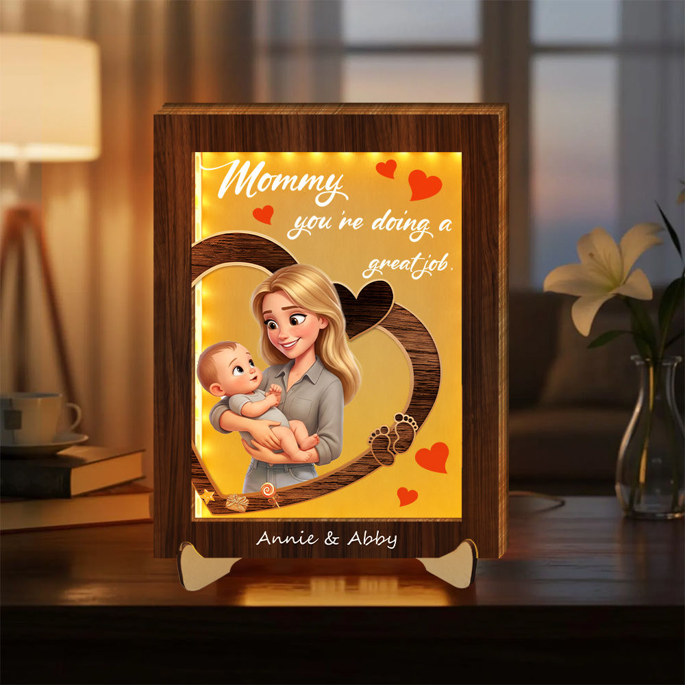 Personalized 3d Wooden Cartooned Light Wall Art, Custom Cartoon Portrait, Wood Home Decor, Night Light Gift, Mother's Day Gift, Birthday Gifts, Anniversary Gifts
