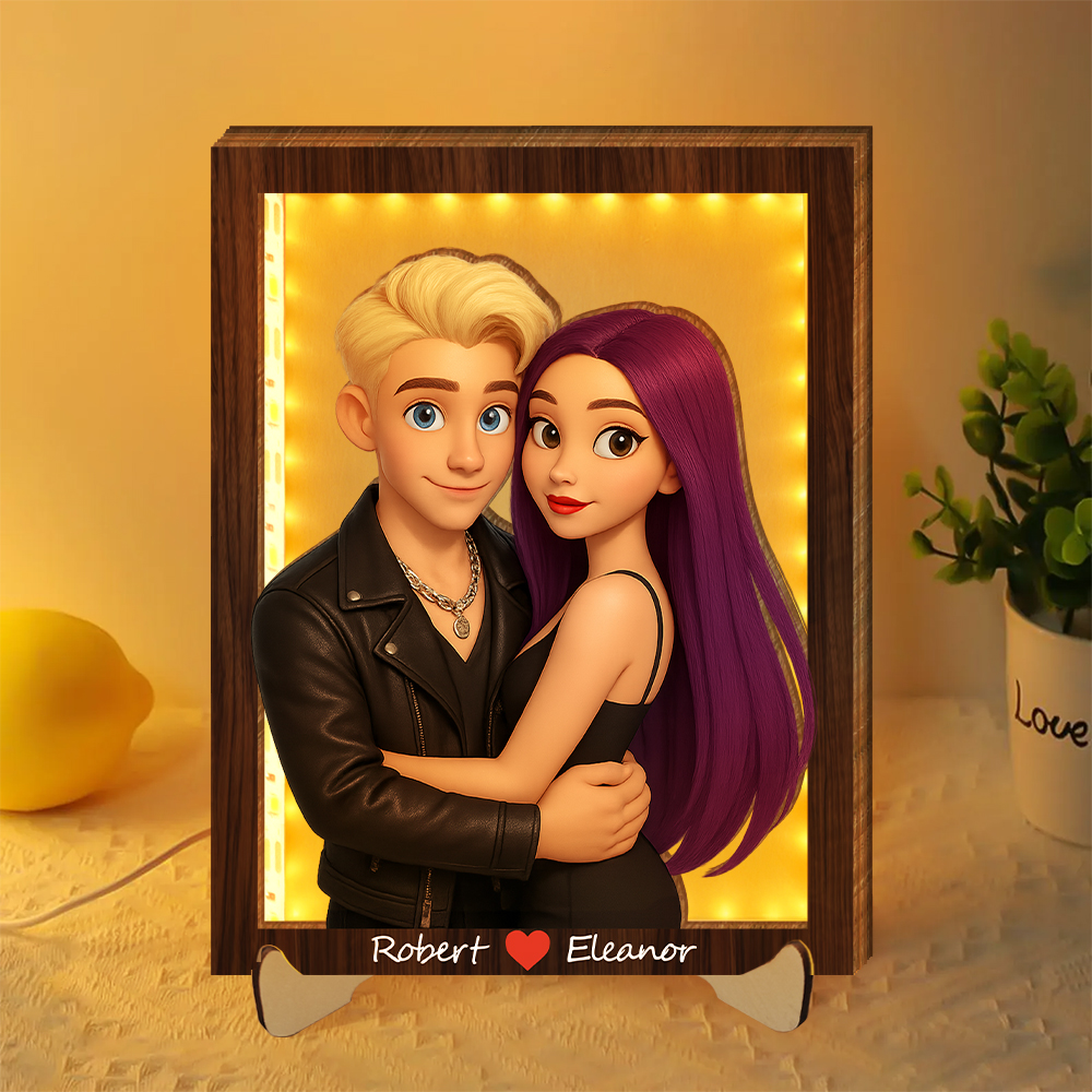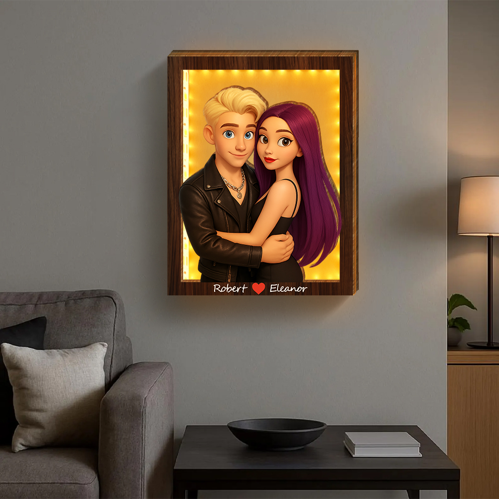 Personalized 3d Wooden Cartooned Light Wall Art, Custom Cartoon Portrait, Wood Home Decor, Night Light Gifts, Valentine's Day Gift, Birthday Gift, Anniversary Gifts,
