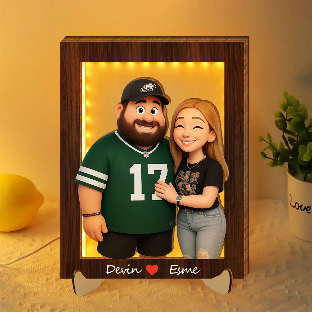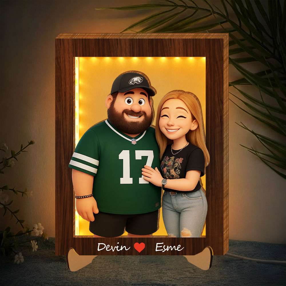 Personalized 3d Wooden Cartooned Light Wall Art, Custom Cartoon Portrait, Wood Home Decor, Night Light Gifts, Valentine's Day Gift, Birthday Gifts, Anniversary Gift,