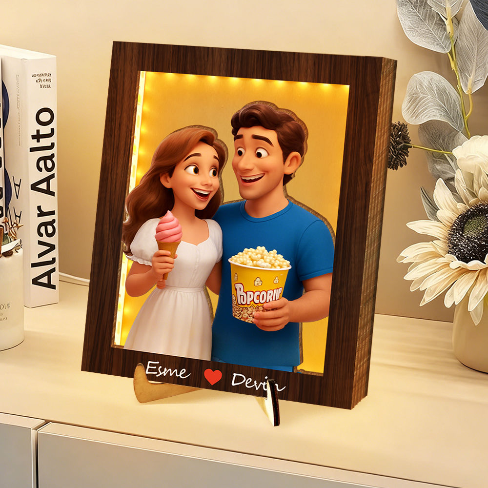 Personalized 3d Wooden Cartooned Light Wall Art, Custom Cartoon Portrait, Wood Home Decor, Night Light Gifts, Valentine's Day Gift, Birthday Gifts, Anniversary Gifts,