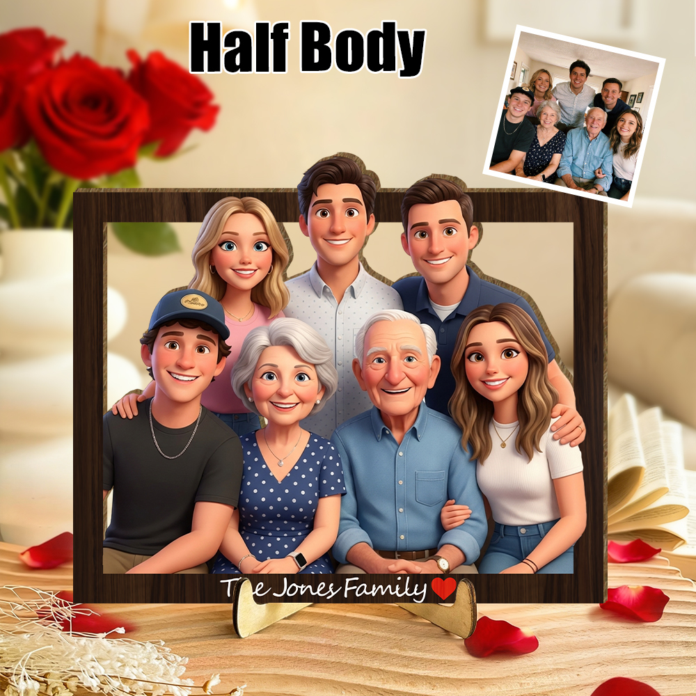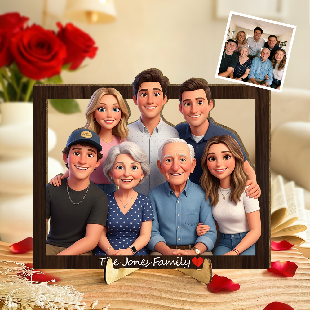 ⭐ Custom Cartoon Portrait Wooden Frame — Personalized Photo-to-Cartoon Art