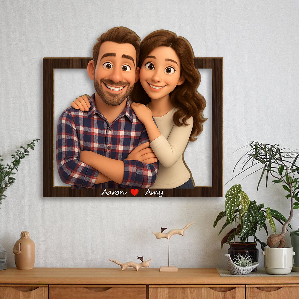 Personalized 3d Wooden Cartooned Wall Art, Custom Cartoon Portrait, Wood Home Decor, Valentine's Day Gifts, Birthday Gift, Anniversary Gift