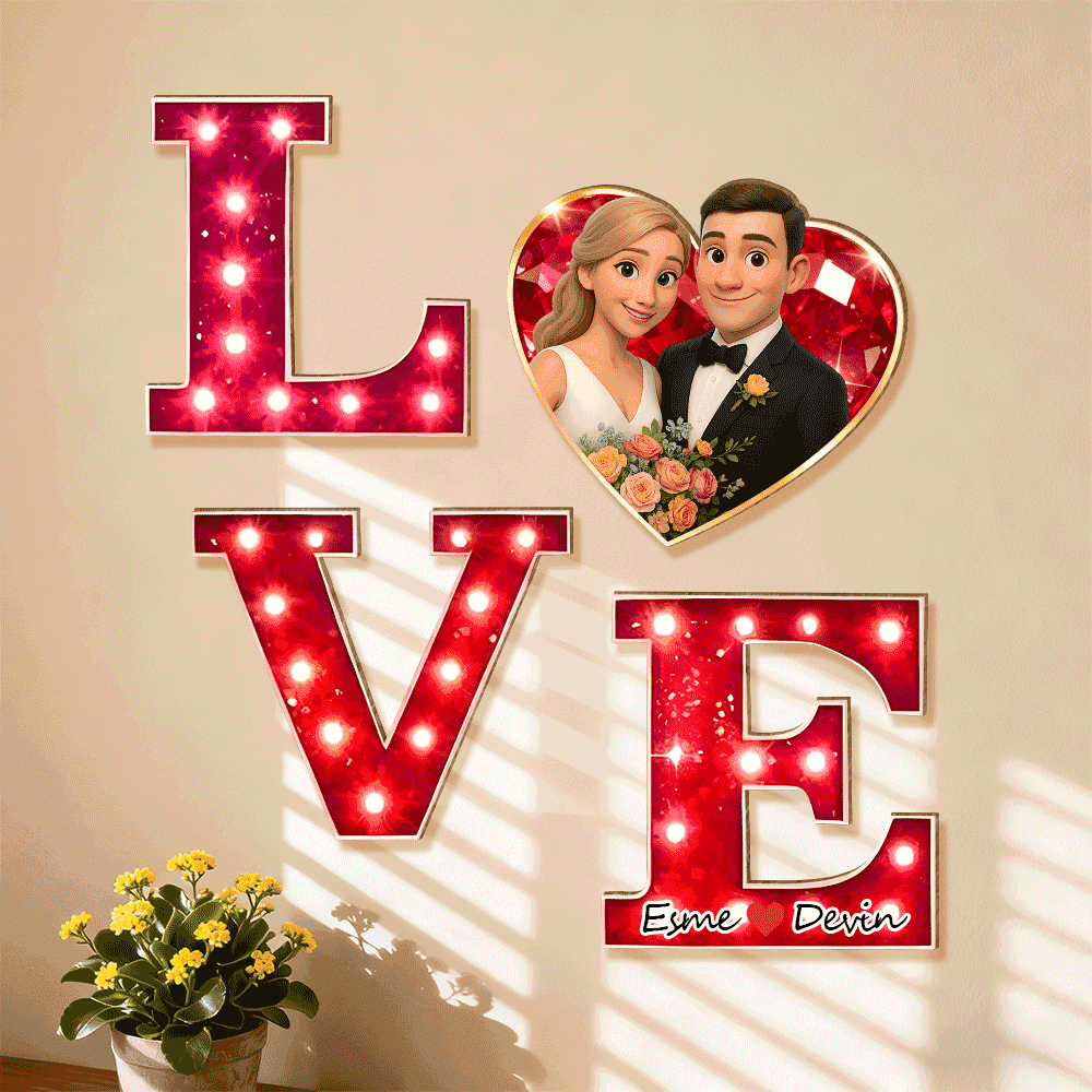 Personalized 3d Wooden Love Wall Art Set, Custom Cartoon Portrait, Wood Home Decor, Valentine's Day Gifts, Birthday Gifts, Anniversary Gift