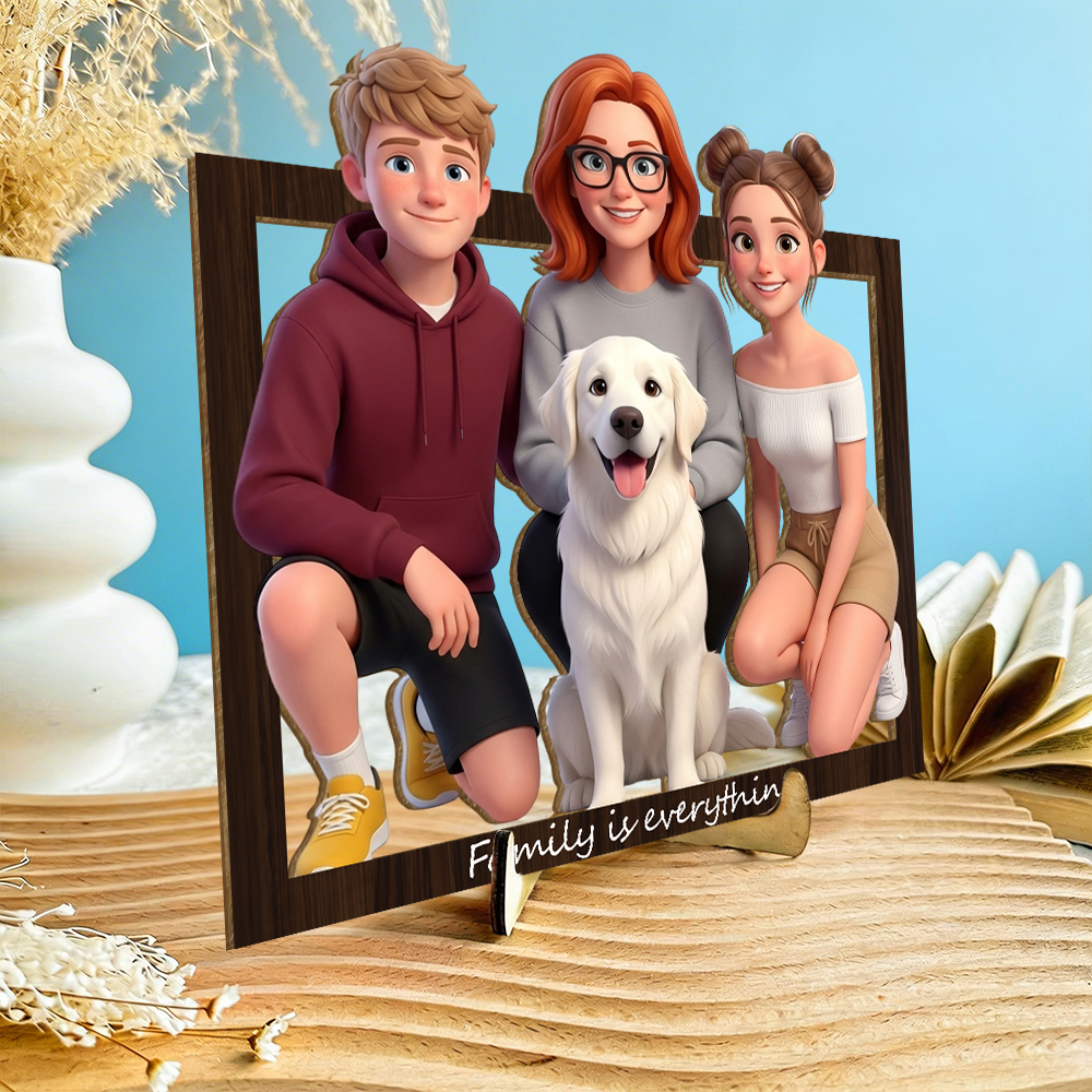 Personalized Cartoon Wood Art – 3d Custom Portrait As Home Decor & Family Gift