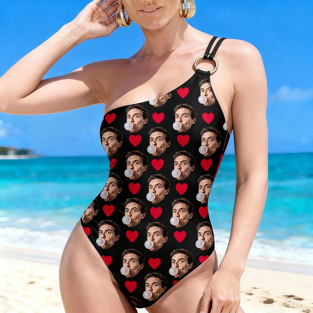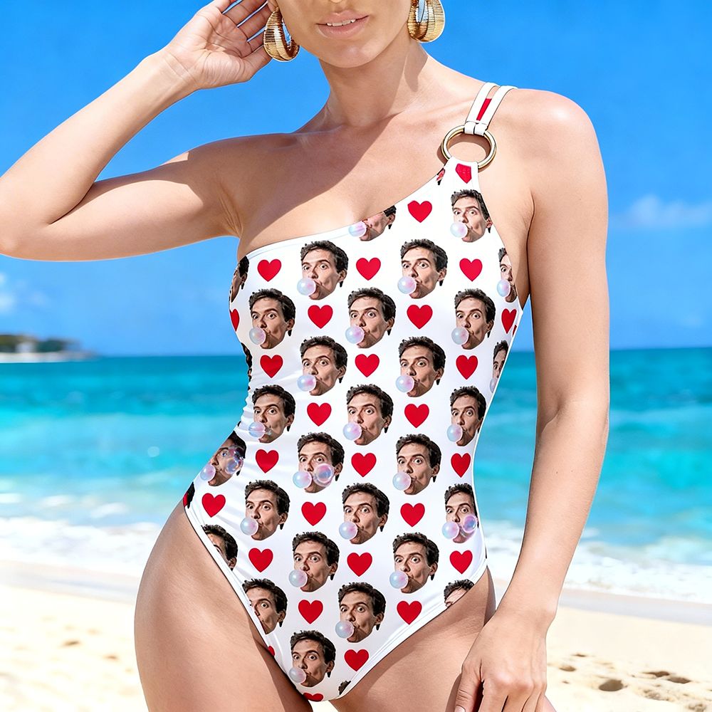 Personalized Face Custom Swimsuit Women's One-shoulder Swimwear Love Bathing Swimsuit