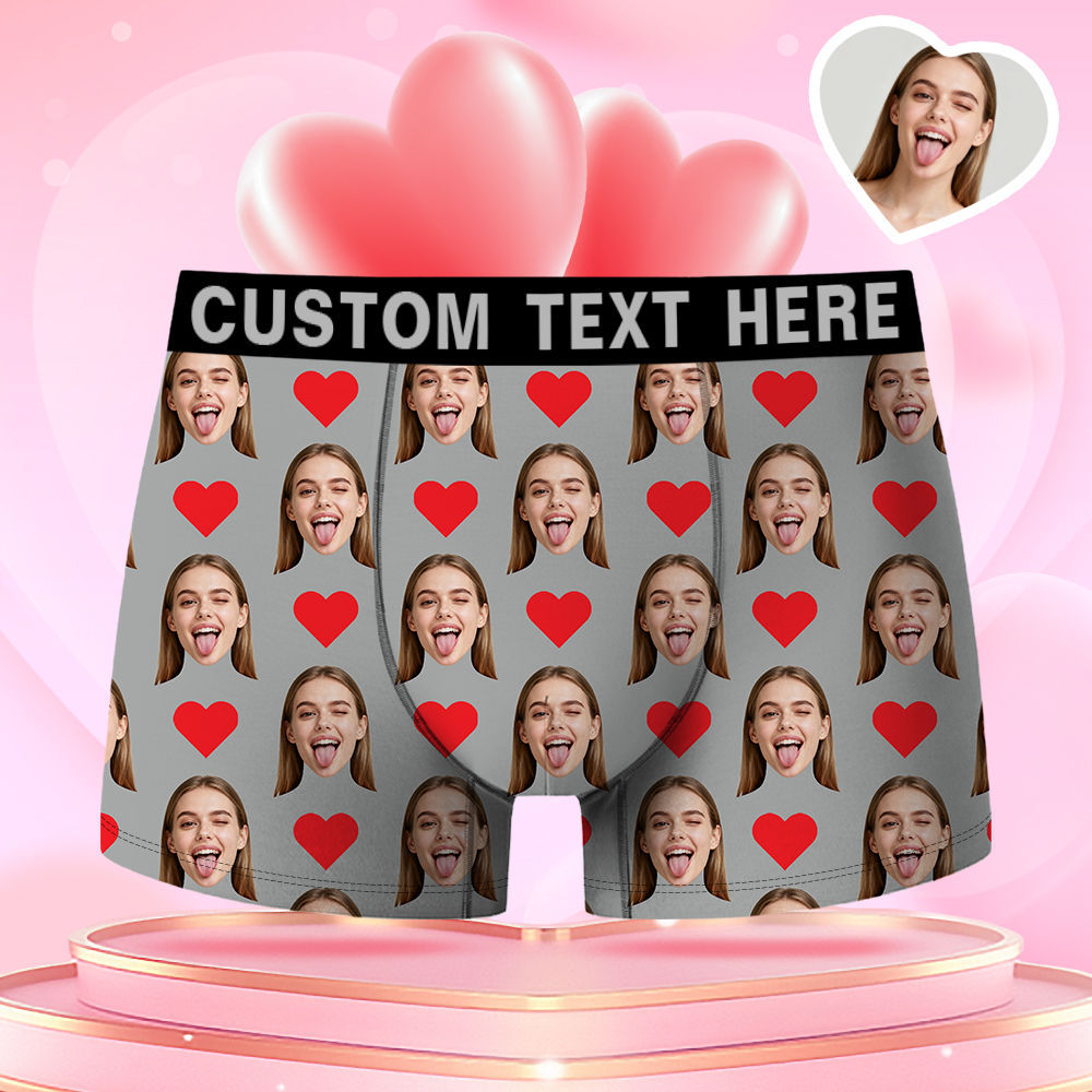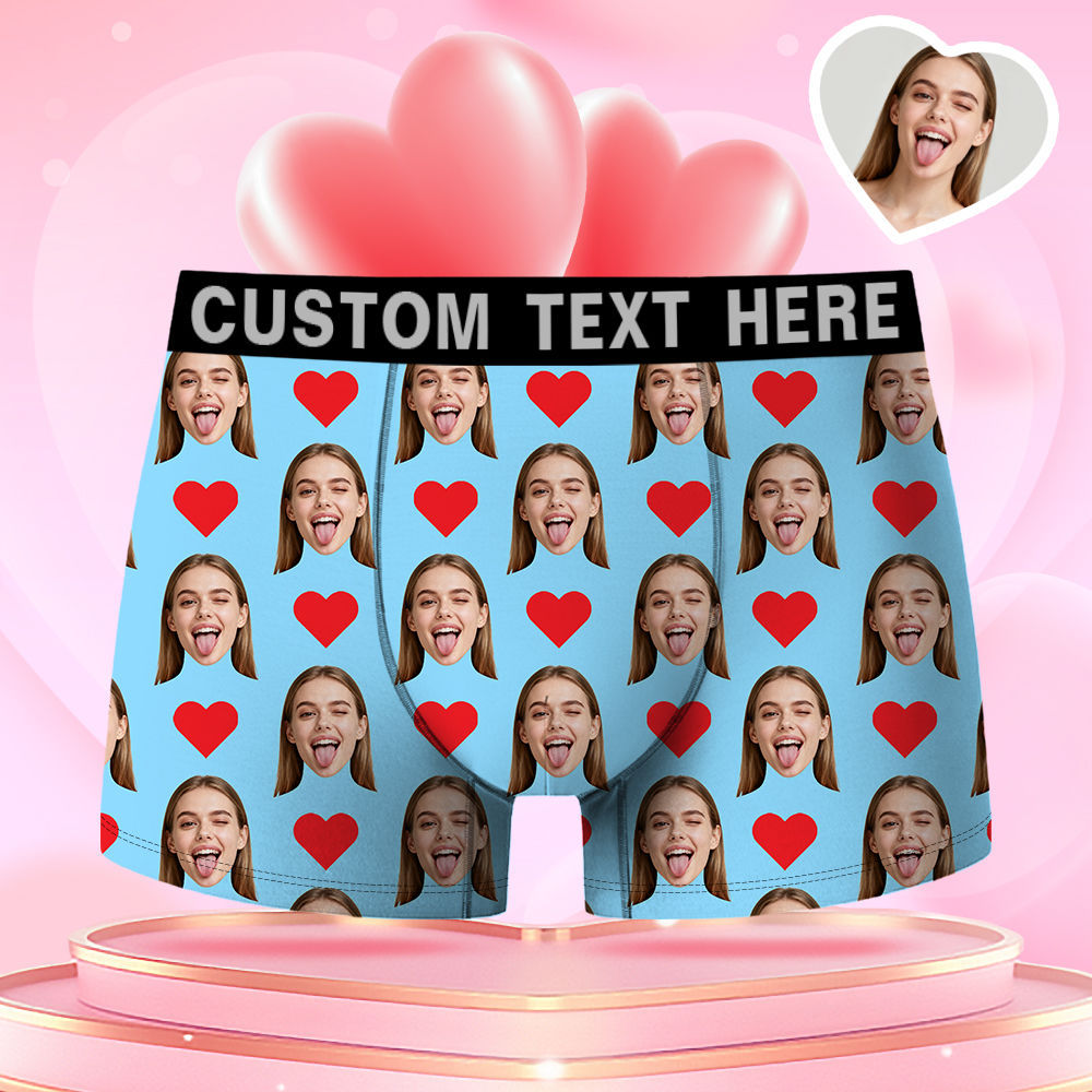 Valentine's Day Gifts Custom Face Men's Boxer Funny Face Gift For Boyfriend Style Underwear Birthday Gifts For Husband, Waistband Text Boxer Gift