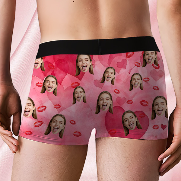 Valentine's Day Gifts Custom Face Men's Boxer Funny Face Gift For Boyfriend Style Underwear Birthday Gifts For Husband, Waistband Text Boxer Gift