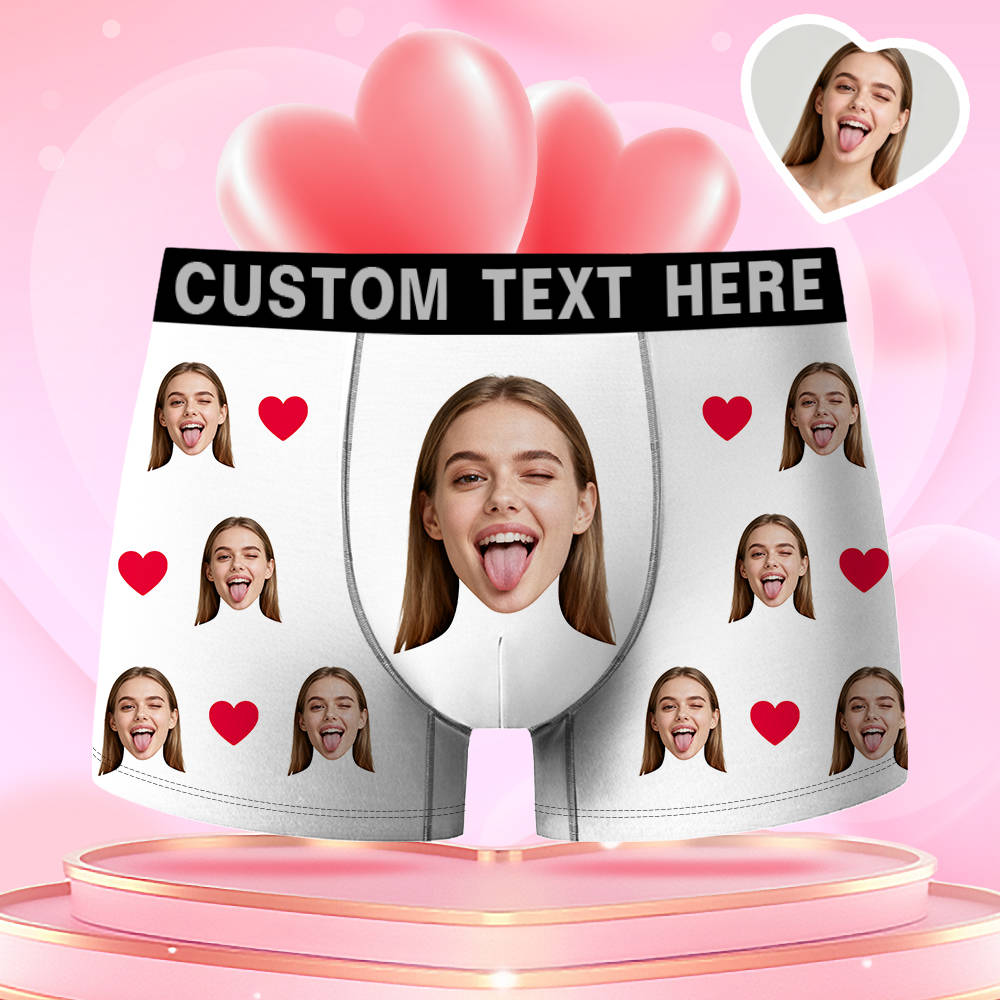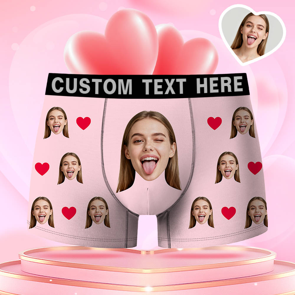 Valentine's Day Gifts Custom Face Men's Boxer Funny Face Gift For Boyfriend Style Underwear Birthday Gifts For Husband, Waistband Text Boxer Gifts