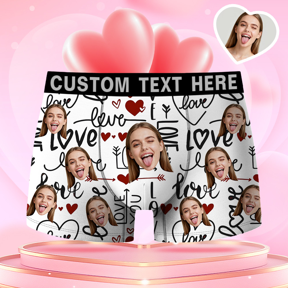 Valentine's Day Gifts Custom Face Men's Boxer Funny Face Gift For Boyfriend Style Underwear Birthday Gifts For Husband, Waistband Text Boxer Gifts