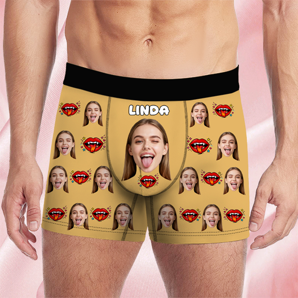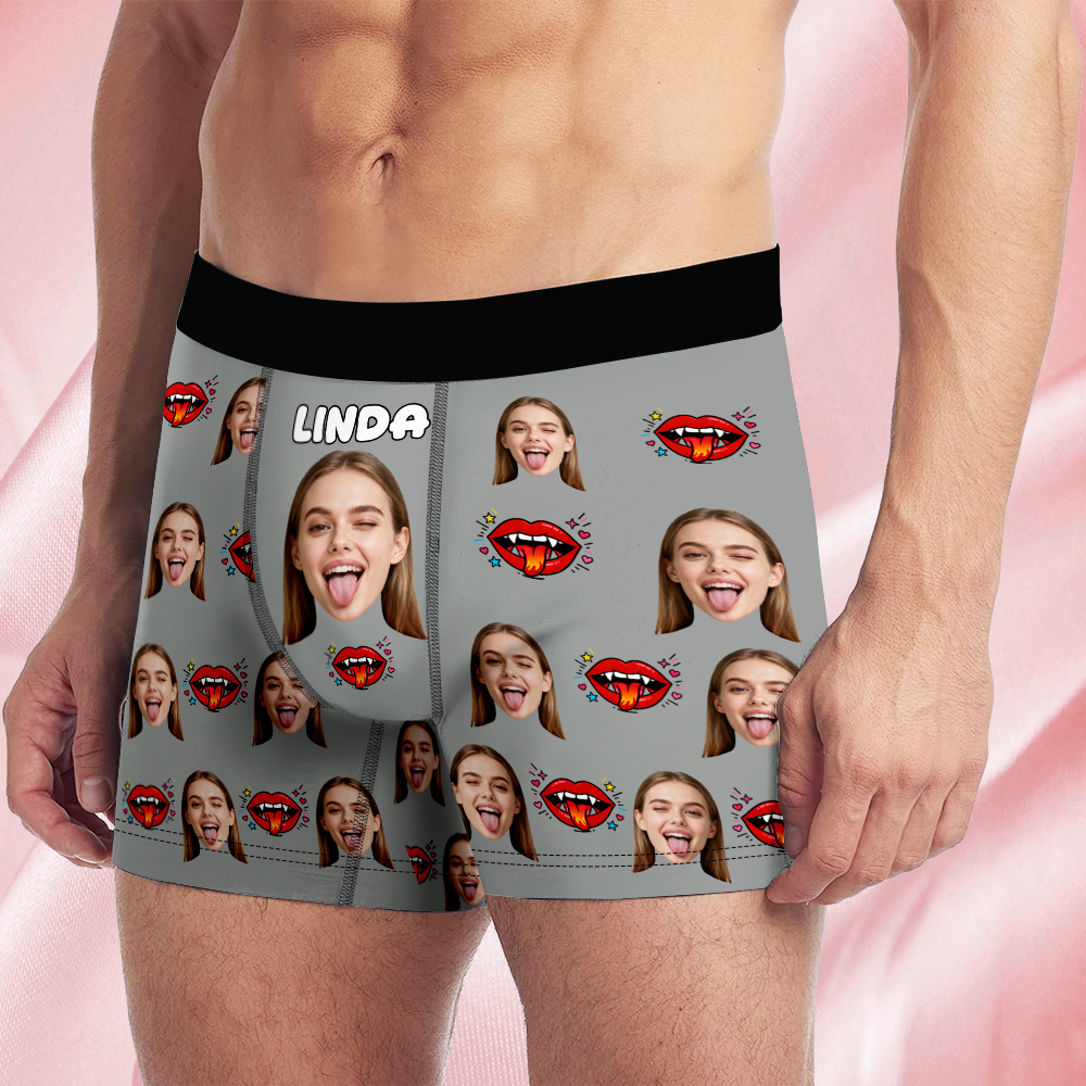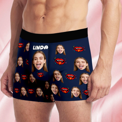 Valentine's Day Gifts Custom Face Men's Boxer Funny Face Gift For Boyfriend Style Underwear Birthday Gifts For Husband, Waistband Text Boxer Gifts