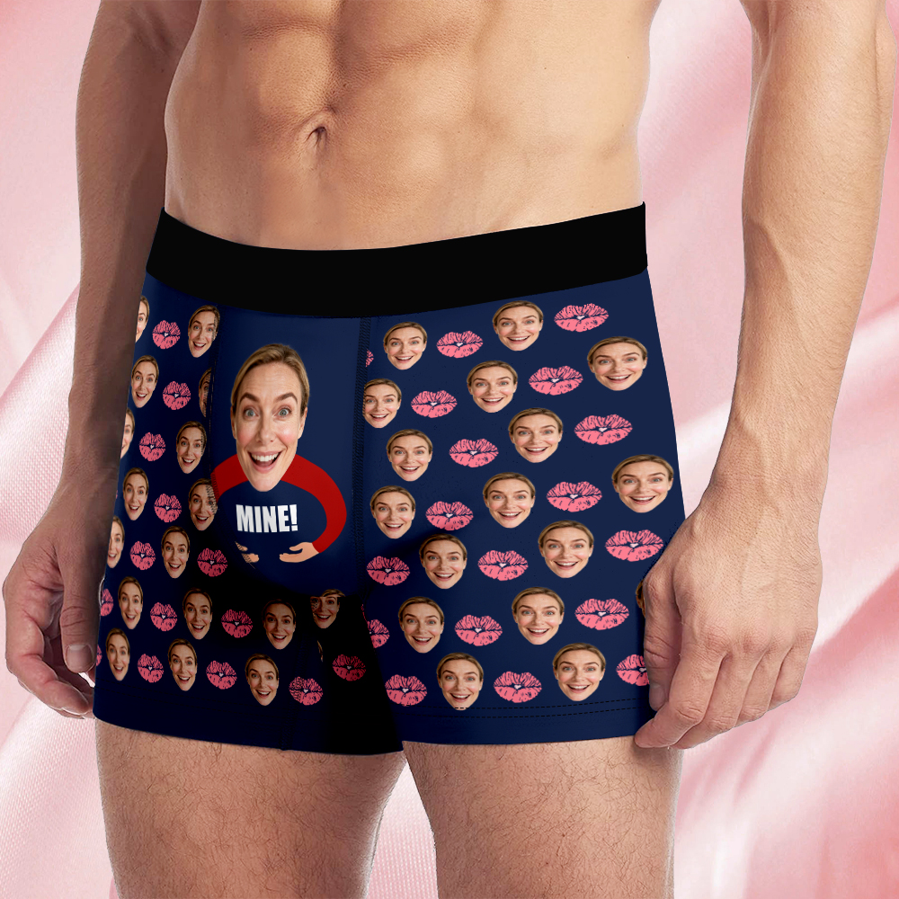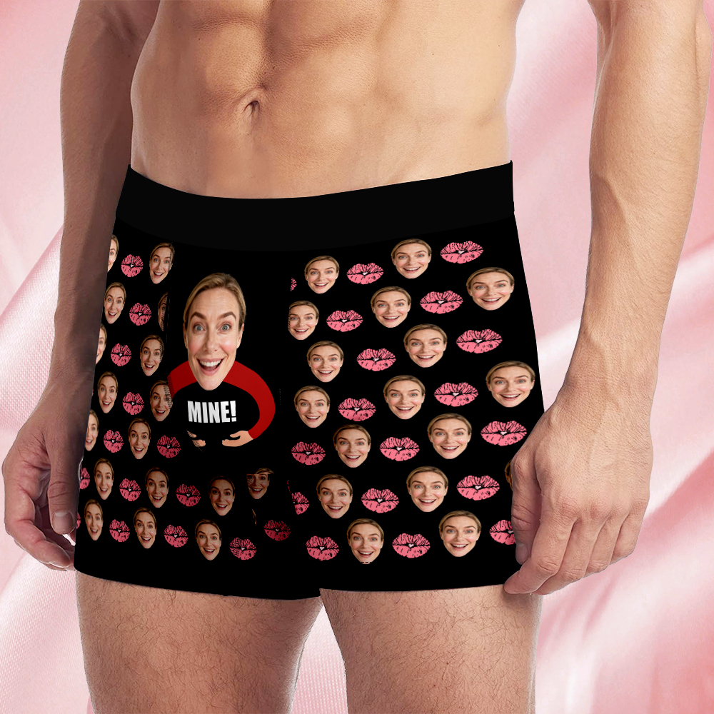 Valentine's Day Gifts Custom Face Men's Boxer Funny Face Gifts For Boyfriend Style Underwear Birthday Gifts For Husband, Waistband Text Boxer Gift