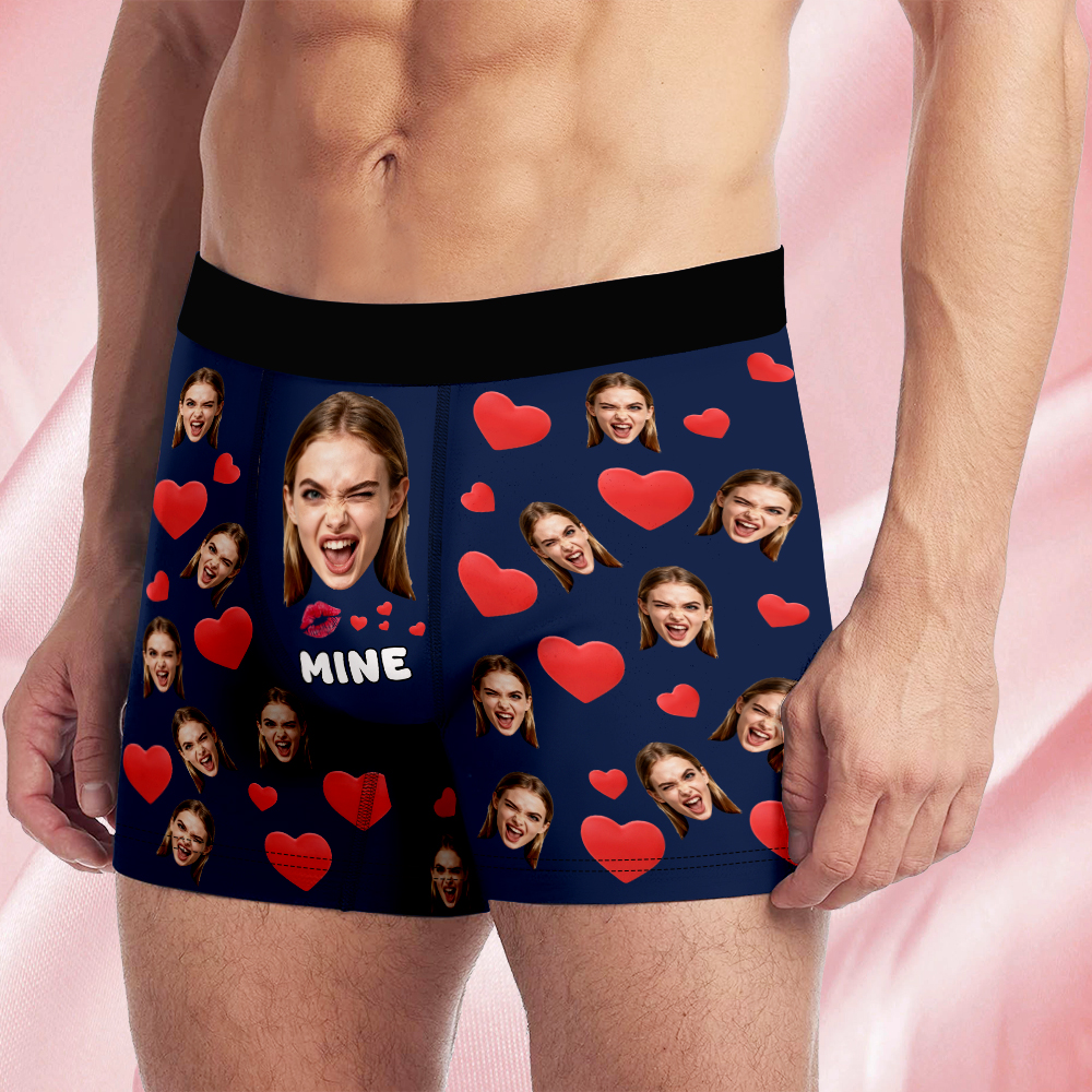 Valentine's Day Gifts Custom Face Men's Boxer Funny Face Gifts For Boyfriend Style Underwear Birthday Gifts For Husband, Waistband Text Boxer Gift