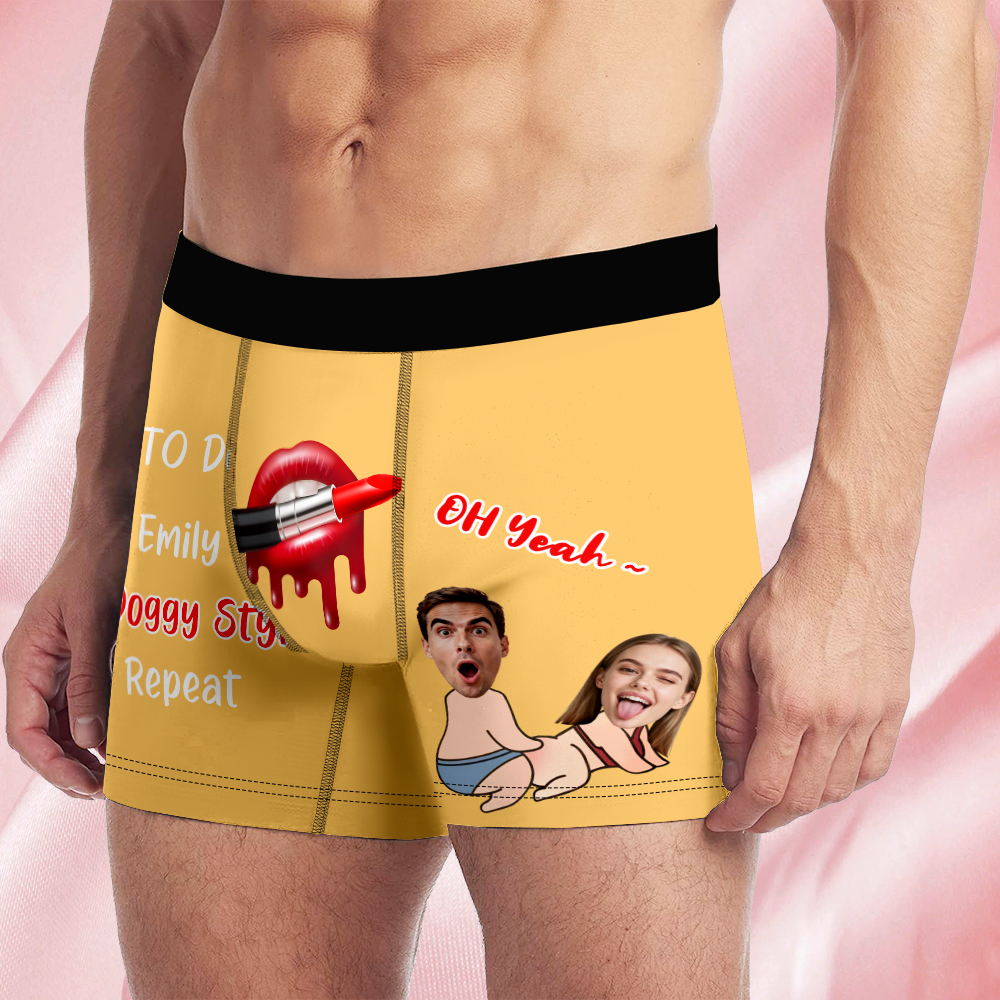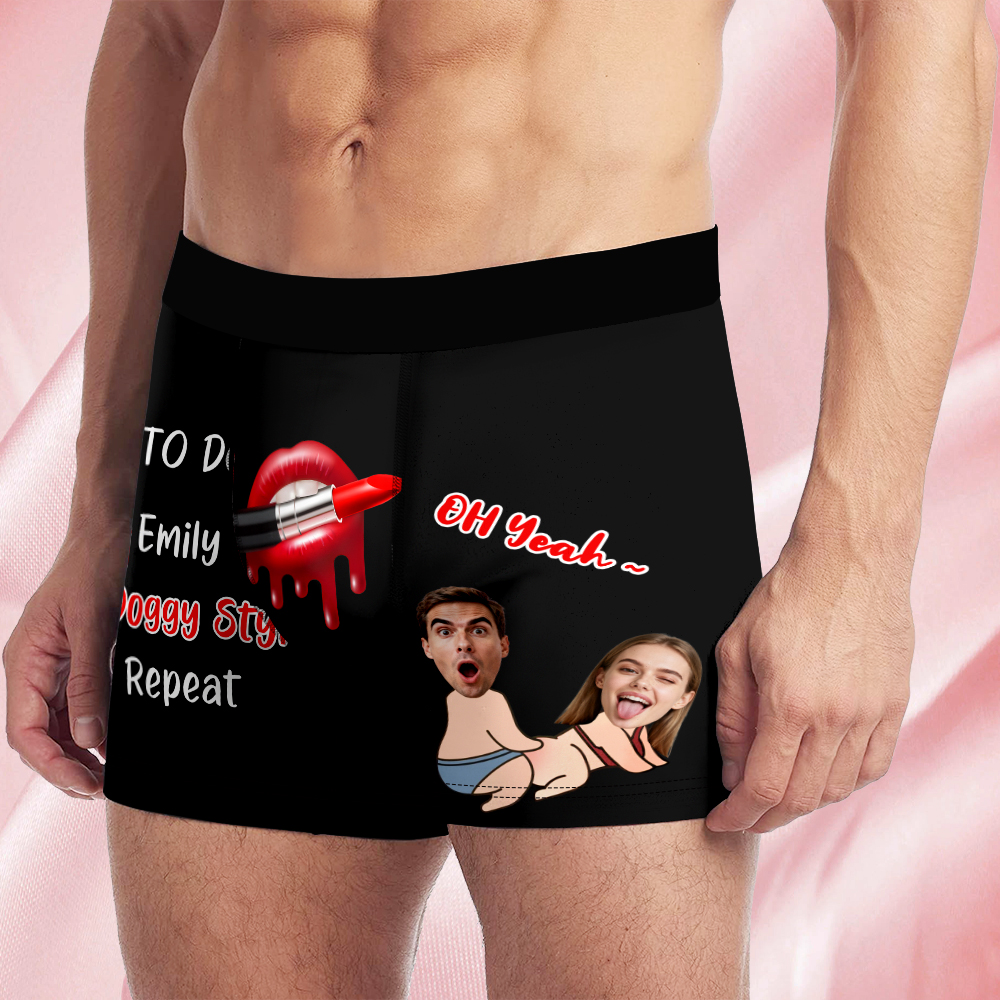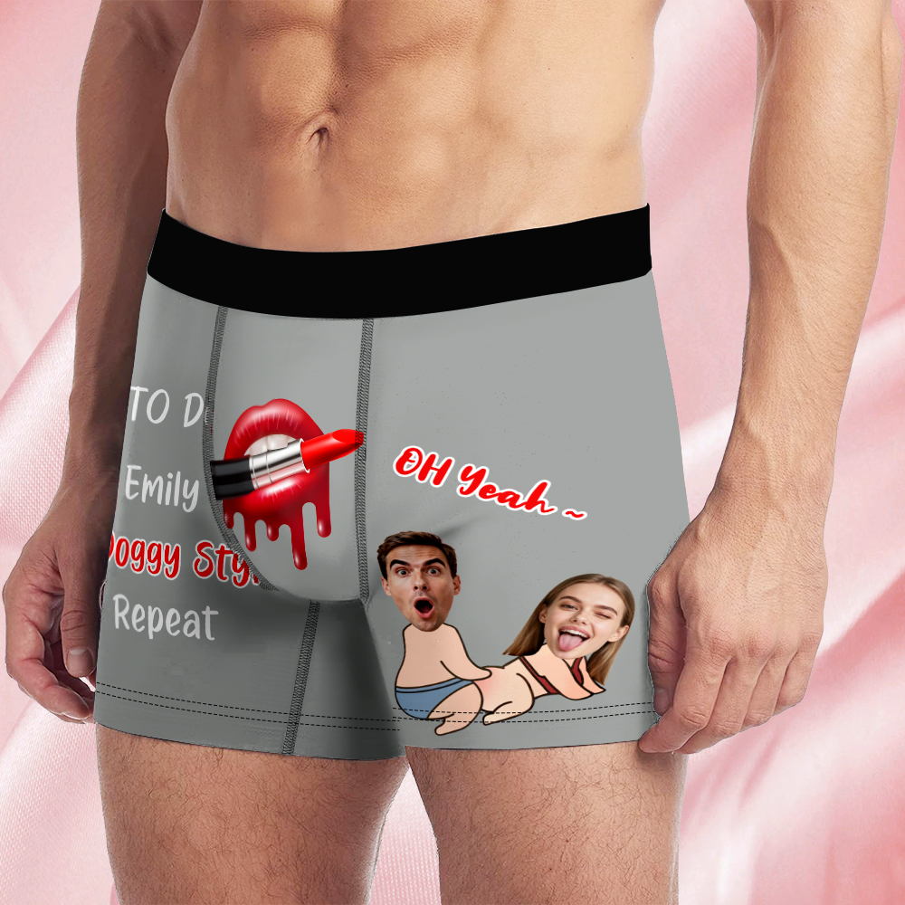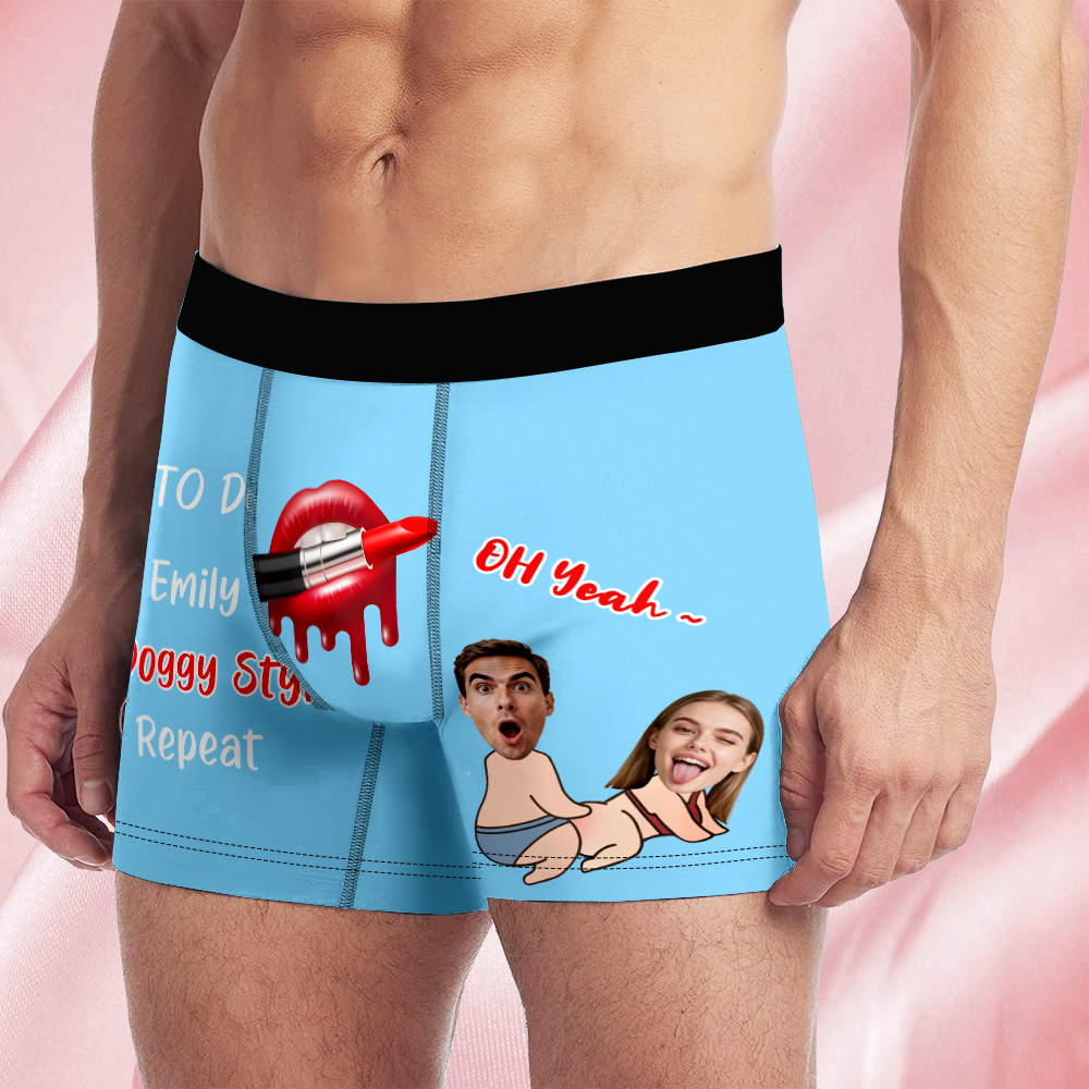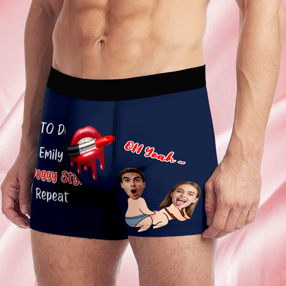 Valentine's Day Gifts Custom Face Men's Boxer Funny Face Gifts For Boyfriend Style Underwear Birthday Gifts For Husband, Waistband Text Boxer Gift